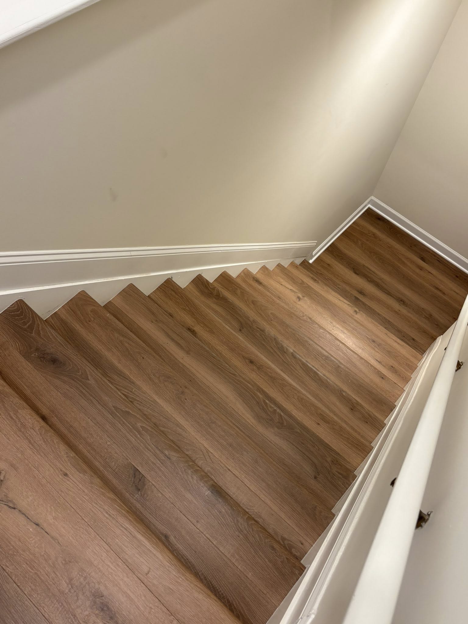 Upgrade your stairs with a sleek, seamless look! Our custom-bent LVP stair treads and nosings are precision-crafted to fit perfectly and match your flooring every time. The result? A durable, polished finish that flows beautifully throughout your space.