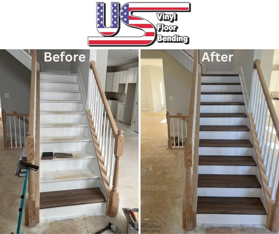 Check out the simplicity of our tread installation! We’re here to provide custom-made luxury vinyl plank, laminate and engineered flooring stair treads and nosings to our customers. Contact US Vinyl Floor Bending today.