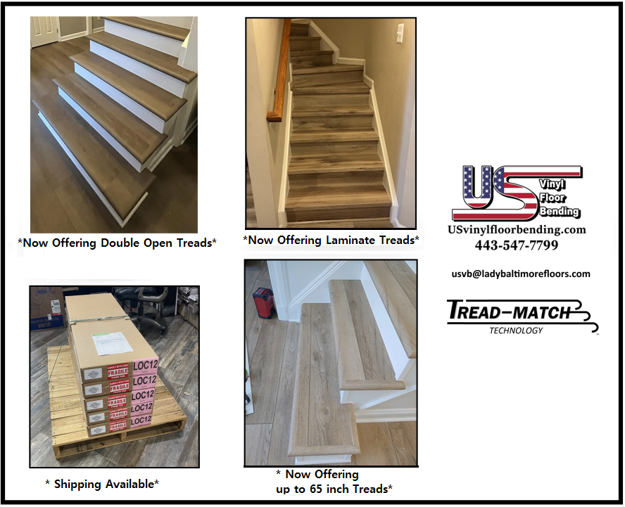 Using our patented Tread-Match technology, we can take any luxury vinyl material, laminate or engineered flooring right out of the box, and make stair treads and nosings. Order our vinyl floor bending products by giving us a call at (443) 547-7799 or emailing usvb@ladybaltimorefloors.com!